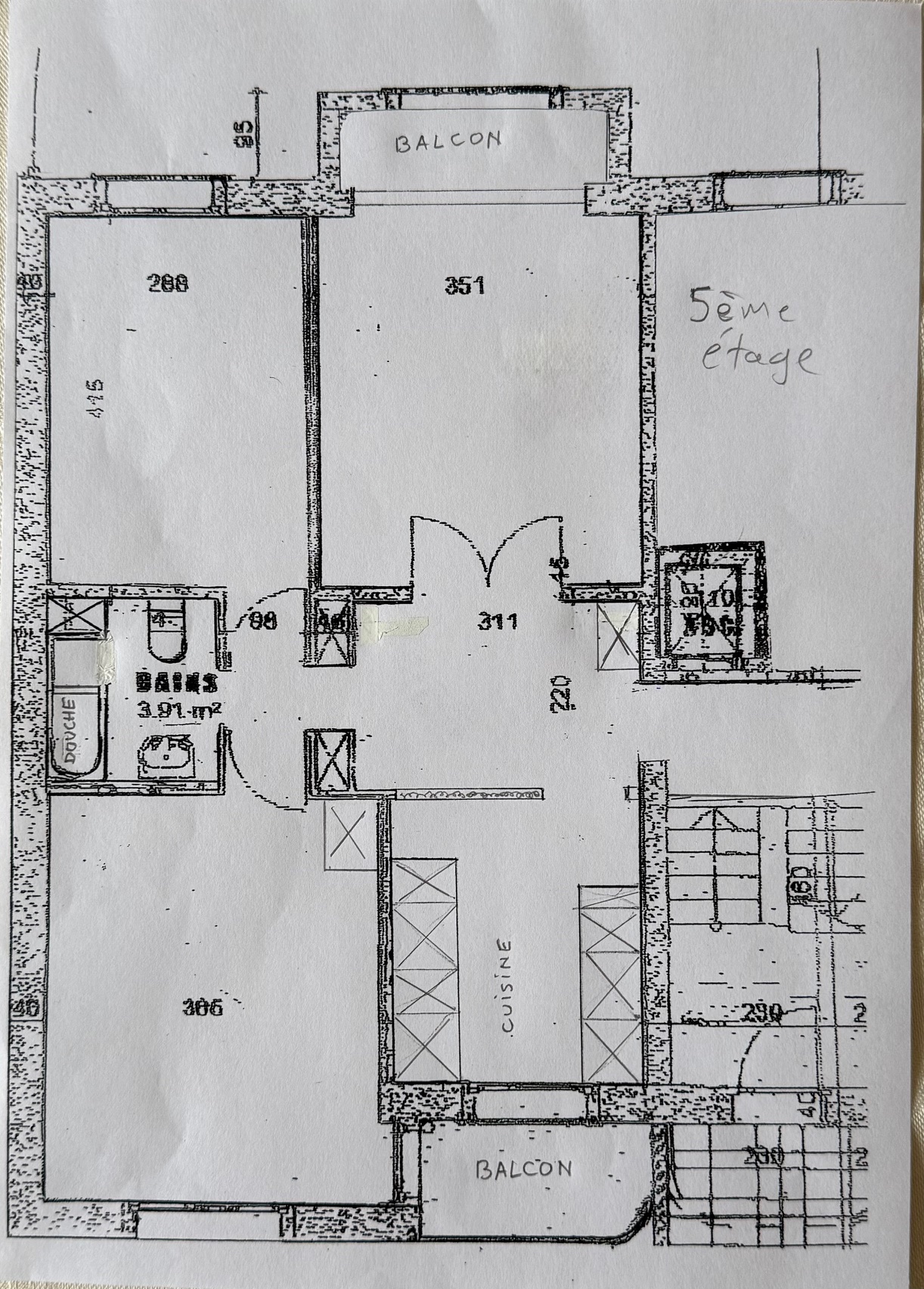 cuisine agencée, salle de bains-WC, balcon Sud-Ouest.