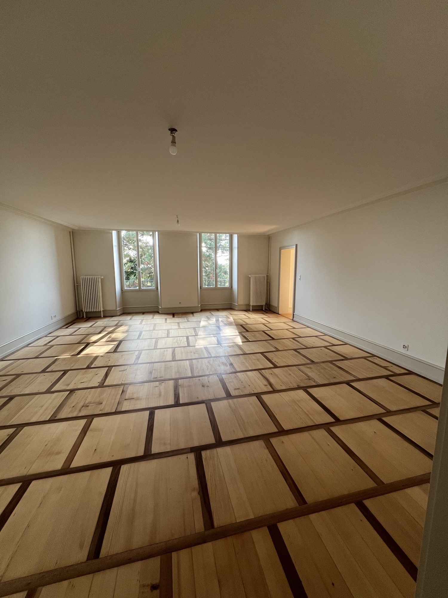 cuisine entièrement aménagée, salon-salle à manger avec parquets d'exception, 3 chambres à coucher, 2 salles d'eau dont une attenante à la chambre principale.