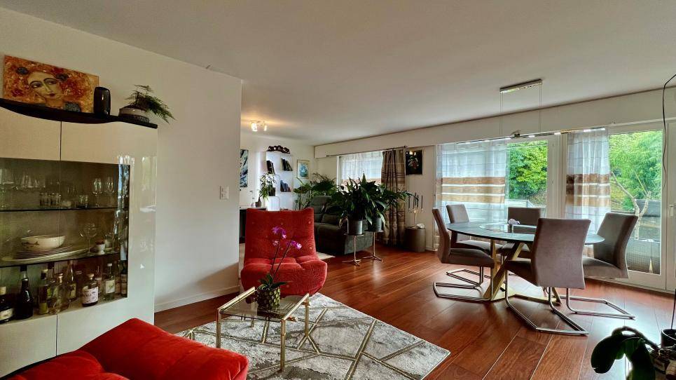 Ce bien, rénové avec goût, dispose d'un grand séjour lumineux et d'une belle cheminée avec accès à un balcon, d'une surface approximative de 17 m2 entourée de verdure.