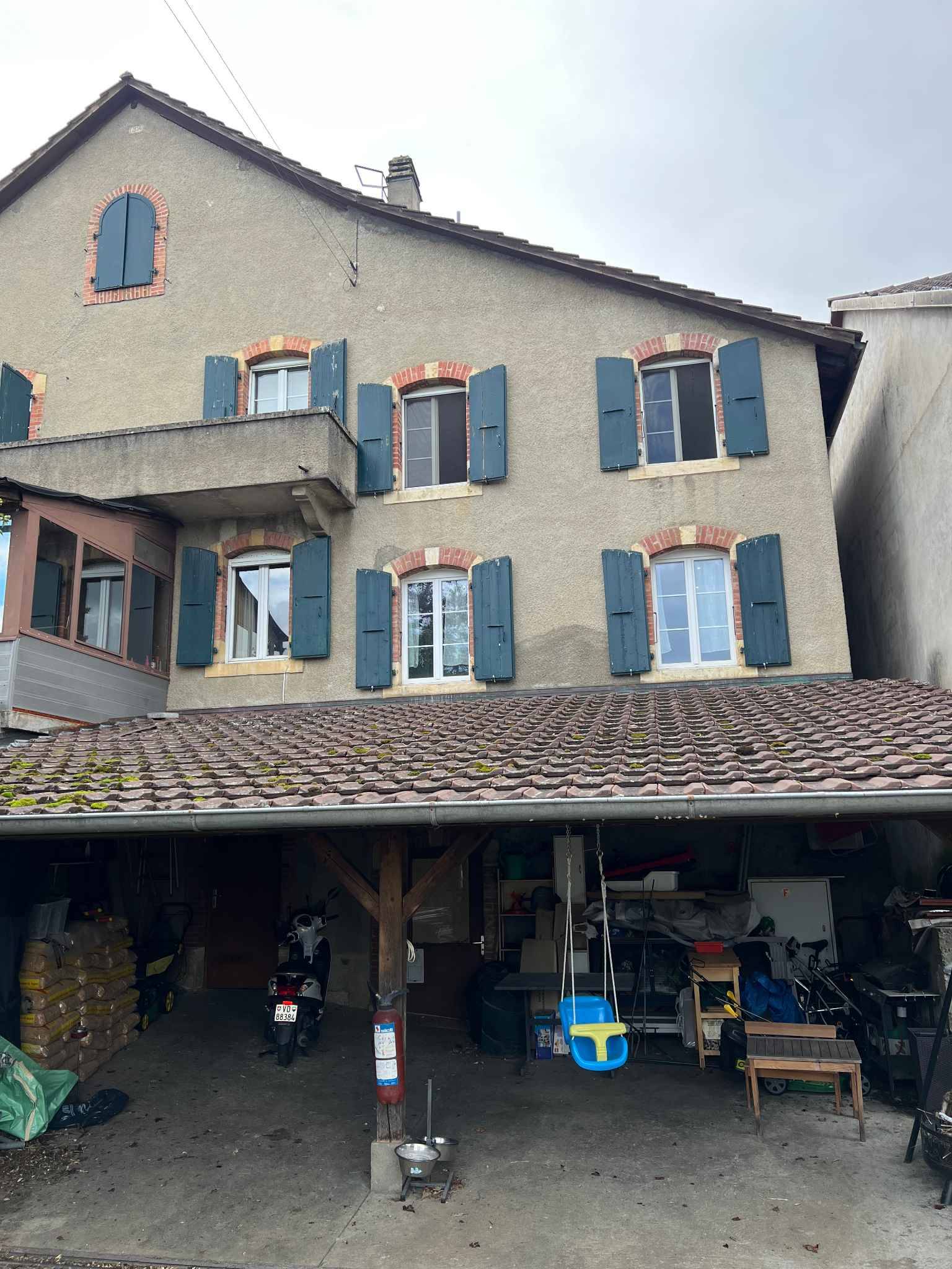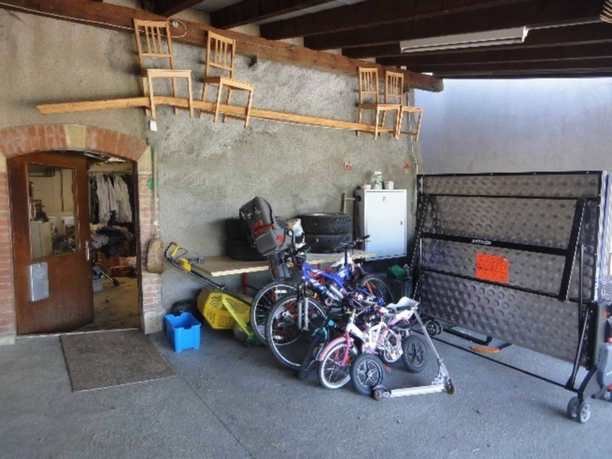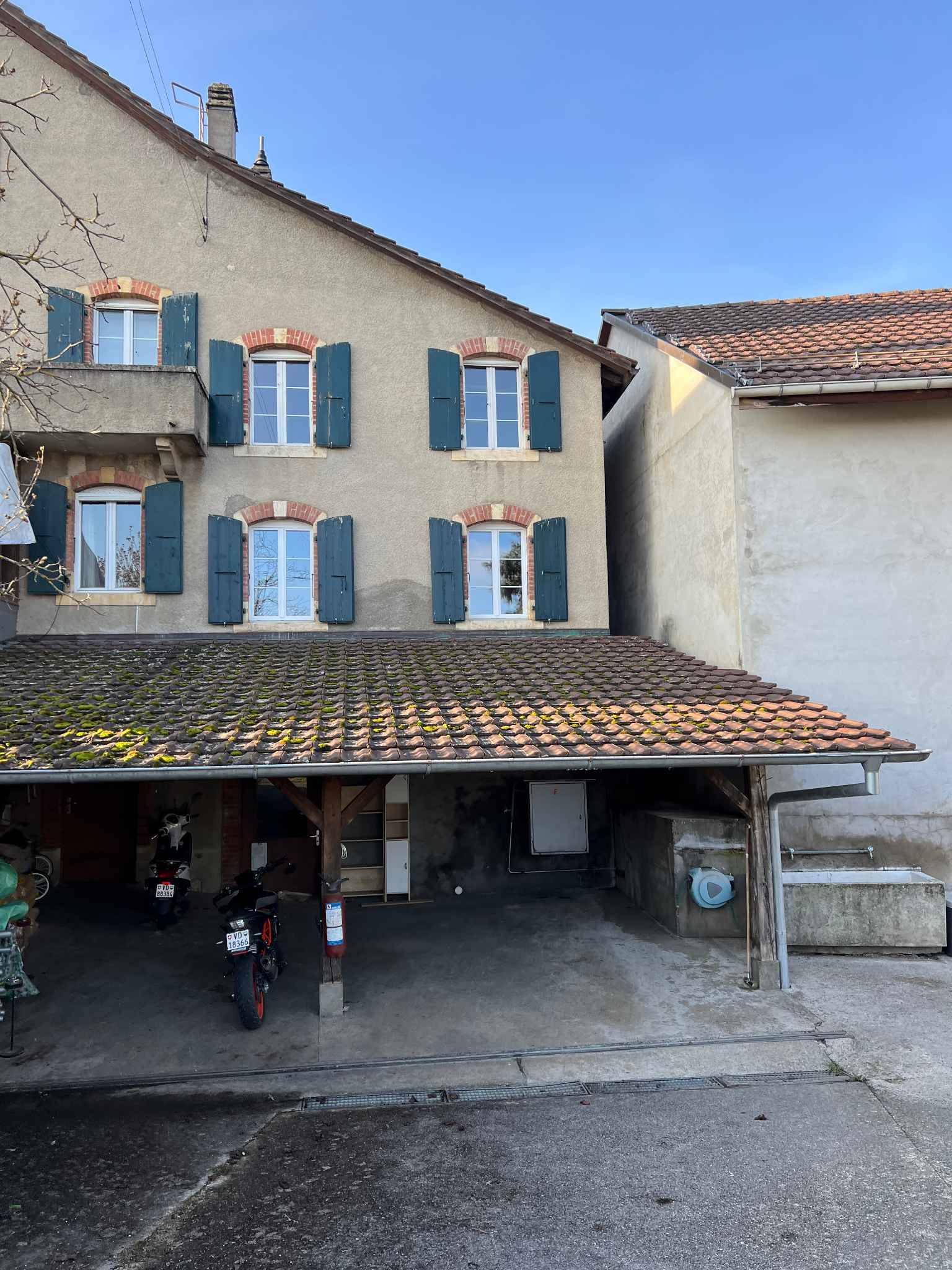 Un couvert, en commun avec l'autre lot, est également disponible (pour moitié) afin d'y stocker du matériel, vélos et autres. On y accède par une rampe d'accès avec un portail.