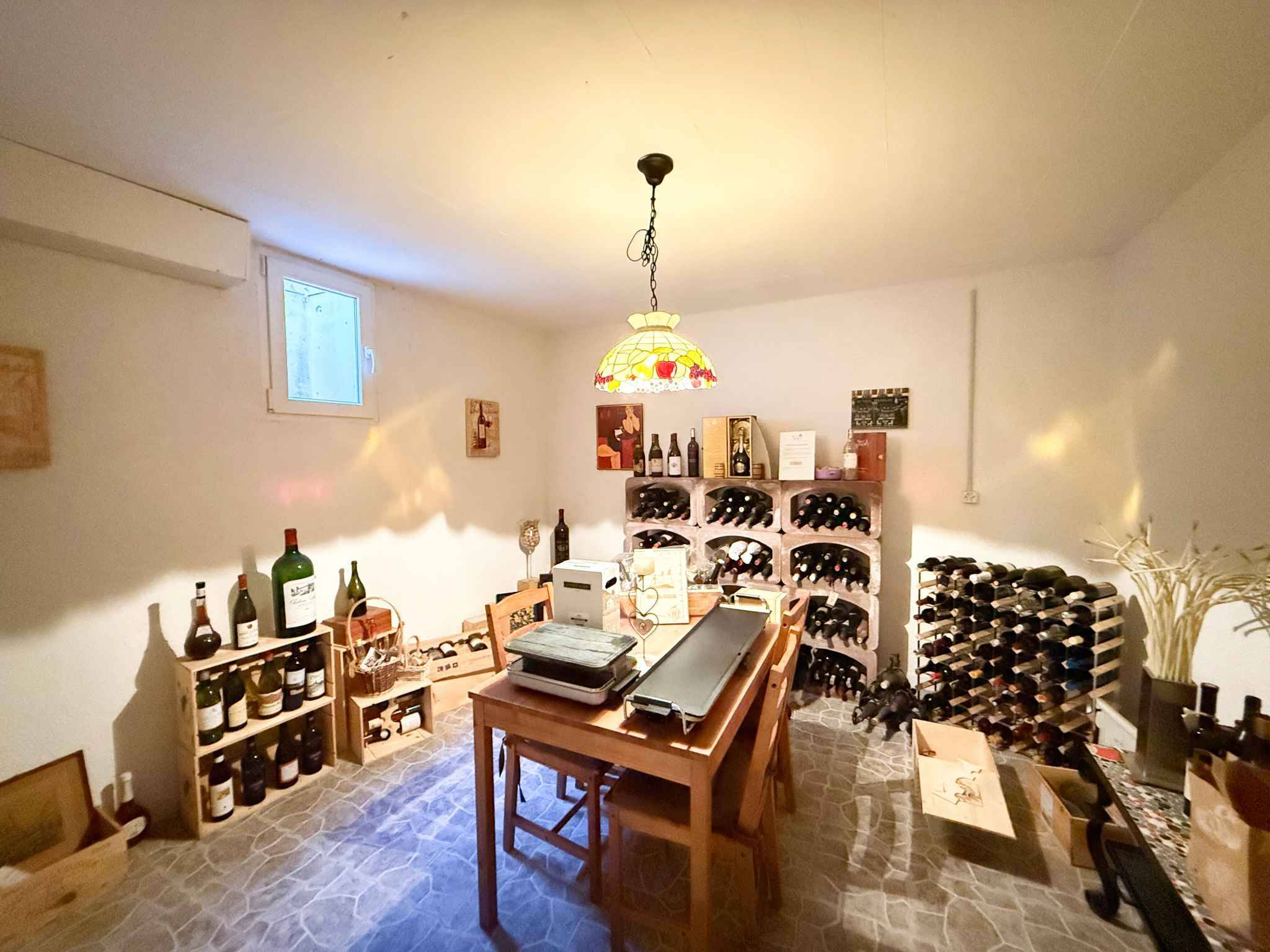 Le sous-sol abrite un carnotzet de caractère, les locaux techniques et l'abri PC. Le chauffage est assuré par une pompe à chaleur géothermique eau-eau avec accumulateur, une solution performante et économique. L'isolation du bâtiment est excellente, avec des déperditions thermiques très faibles confirmées par une étude Raiffeisen.