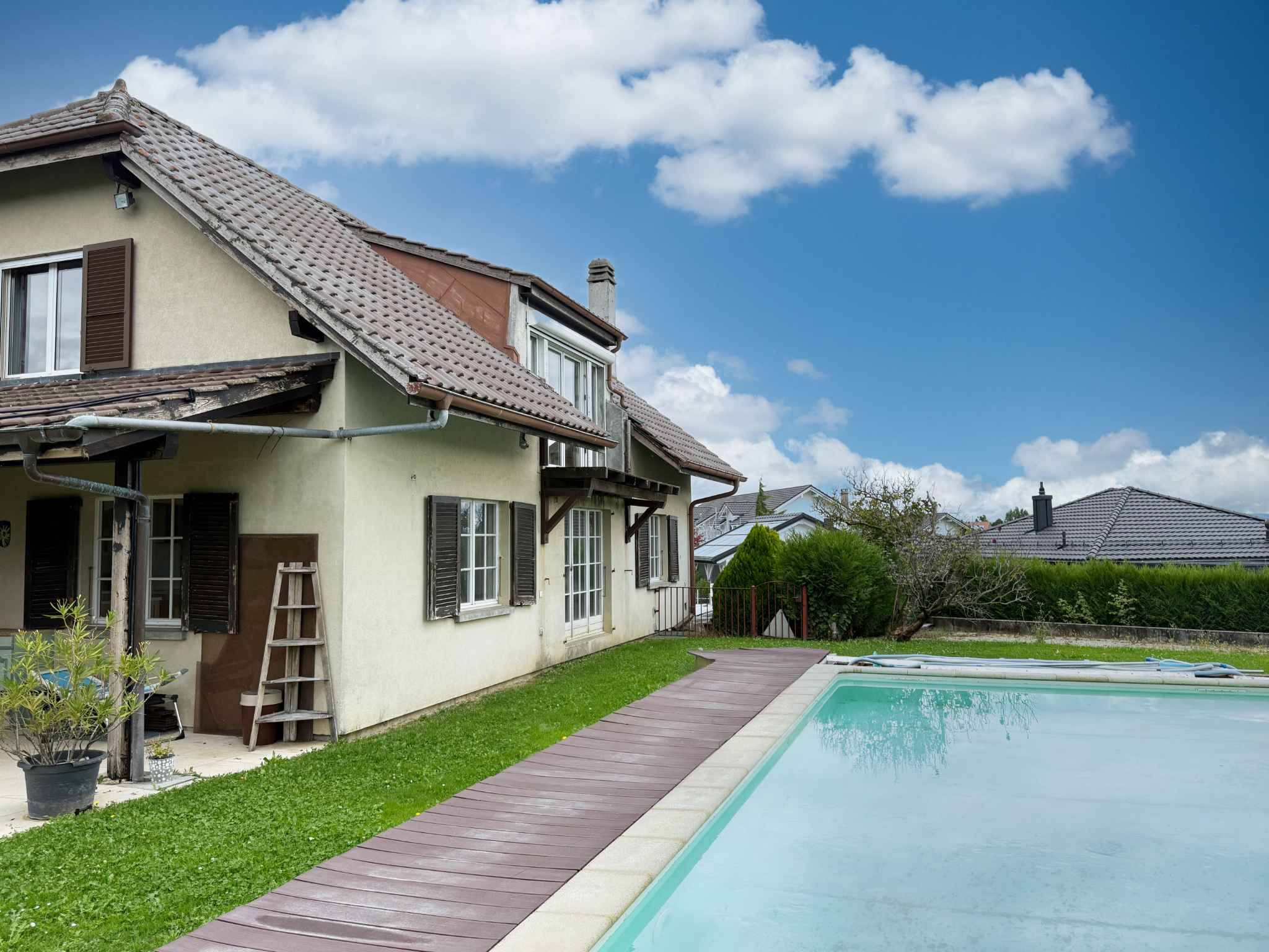 Vous rêvez d’espace, de calme et de nature ? Cette villa individuelle avec piscine, implantée sur une parcelle généreuse de près de 1’860 m2 en bordure immédiate de zone agricole, vous offre un cadre unique où sérénité et intimité sont au rendez-vous.